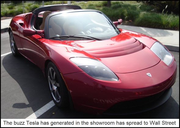 The buzz Tesla has generated in the showroom has spread to Wall Street