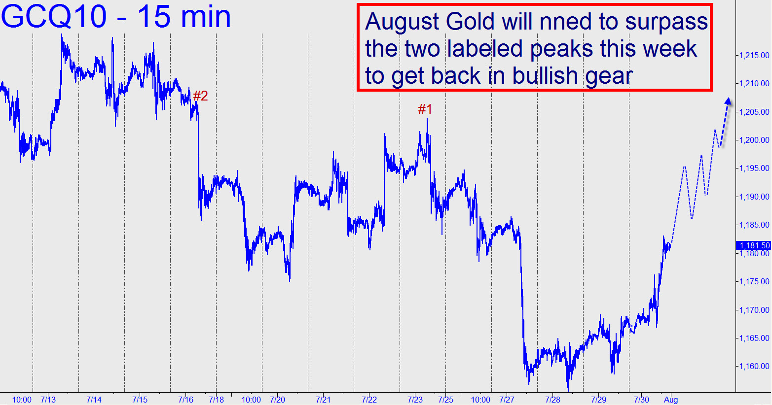 Gold has backed off a small precipice, rallying from within just 0.60 of a well-advertised Hidden Pivot support at 1155.00. Look at the accompanying chart, however, and you’ll see that bulls will have their work cut out for them if they want to restore a positive look to the lesser charts. For starters, any rally this week will need to take on external peak #1, and at least one peak “along the wall” (#2=1206.70). I’ll wait to see what Monday brings before I exhort you to get excited. (Note: We’ll move to the December contract starting tomorrow. The corresponding peaks lie, respectively, at 1207.50 and 1210.70.)