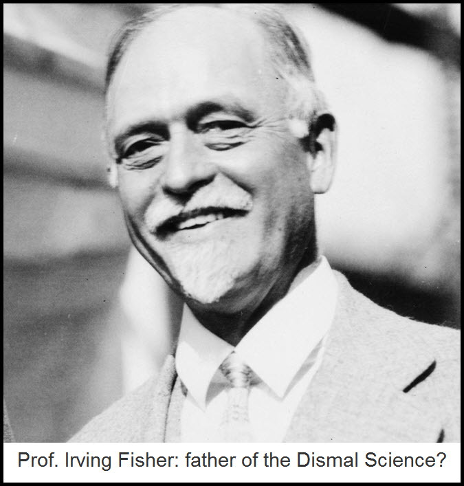 We’re running the commentary below for a second consecutive day because it drew such a heavy and varied response in the Rick’s Picks forum. Surprisingly, no one rose to Milton Friedman’s defense, although one reader traced the current state of the Dismal Science, such as it is, to economist Irving Fisher, who achieved notoriety for declaiming very publically just before the 1929 Crash that “stock prices have reached what looks like a permanently high plateau.” The professor subsequently went back to the drawing board for some serious reflection on deflation, so it’s possible he’ll return to vogue at some point, or at least have his probably undeserved reputation as a laughing stock mitigated by sure-to-be-growing legions of anti-Keynesians.