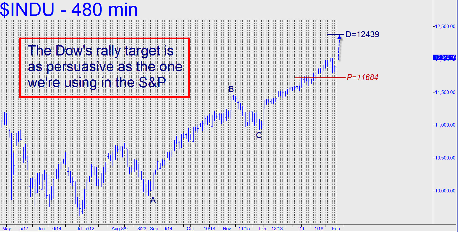 A Hidden Pivot target not far above, at 12484, is as clear and compelling as the 1356.00 target we’re using for the E-Mini S&P. And just as the crystal clarity of the target inclines us to treat it with skepticism each step of the way, we’ll plan on shorting it aggressively if it should be reached. Keep in mind that the Hidden Pivot midpoint — in this case 11684 — is always going to be in play either until the target is reached, or point ‘C’ (10930) is exceeded to the downside. An implication of this is that a 350-point plunge to the pivot would not necessarily be bearish.