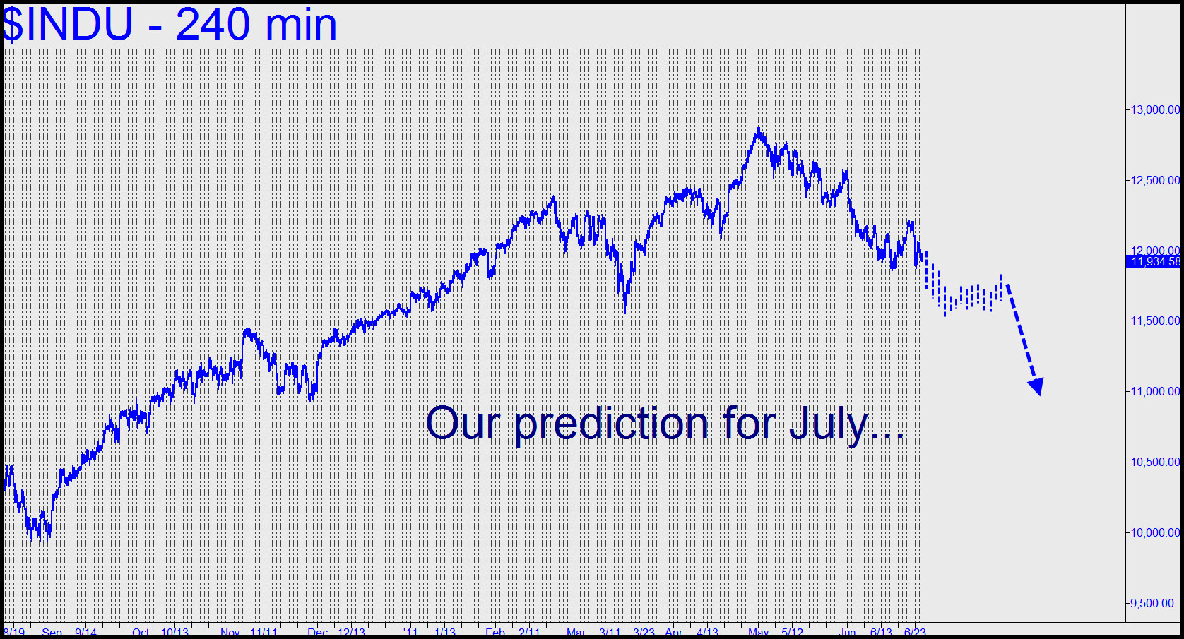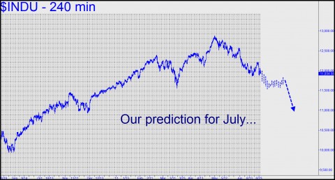 With respect to the stock market, we would ordinarily employ the Hidden Pivot Method to forecast price action for this summer. (You can learn to do this yourself, and to do it impressively well, by clicking here). In this case, however, our target of 11506 only gets us halfway to the next logical low. Once again, you needn’t be a swami to see that the Industrial Average will fall to 11000 if the mid-March low gives way. The only question is, how quickly will it happen? Our hunch is, very quickly, especially given the prospect of a budget battle on Capitol Hill. Although until recently we had viewed the debt-limit issue as a red herring, it’s starting to look as though the Republicans, goaded by Tea Party stalwarts, will dig in their heels. As why should they not, considering that the Democrats are apparently serious about trying to balance the budget on the backs of America’s small businesses? Obama and the Democrats still seem to think that anyone grossing $250k is a fat cat, but in reality that is the threshold at which small businesses in this country begin to enjoy success — and with it, the prospect of hiring more workers. Leave it to Obama and the tax-and-spend crowd to pounce on the only sector of the economy with the potential to rejuvenate it.