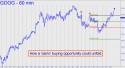 Google’s failure to correct all the way down to a Hidden Pivot target at 722 (see inset) is tentatively bullish and would be confirmed by a short upthrust exceeding 762.20, the higher of two external peaks shown in the chart. That would create a promising impulse leg on the hourly chart — one with enough power, presumably, to end the two-week presumptive consolidation that has followed October 5’s all-time high at 778. A low-risk ‘camo’ buying opportunity would beckon if a fleeting rally were to slightly exceed peak #2 and retrace in b-c fashion.