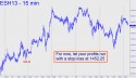 I am tracking a single contract whose cost basis has effectively been lowered to 1433.50 by partial-profit-taking on three additional contracts held initially. Since we’re shooting for a 1494.50 target that has been drum-rolled here for a while, there is good reason to be aggressive by using a generous trailing stop. My suggestion is to plan a 1452.25 exit, based on the ‘external’ low highlighted in the chart. We’ll raise it if the futures take out recent highs near 1472.00, but I’ll need to see what the hourly chart looks like at that point in order to extrapolate an impulse-leg stop from it. I’ll post the stop as an update in the chat room, but if you want to be notified in real time by e-mail make sure you’ve enabled the ‘E-Mail Notifications’ feature on your My Account page. _______ UPDATE (January 16 at 6:07 p.m. EST): Following yesterday’s hokeypokey price action, we continue to hold a single contract tied to the risk management criteria spelled out above. ______ UPDATE (January 17 at 10:06 p.m EST): We have a theoretical profit of $2000 in our position at current prices, but there’s $1000 more to be extracted if and when the futures reach our longstanding target at 1494.50. For now, we’ll maintain a generous fixed stop at 1456.25, where the hourly chart would turn bearishly impulsive. In the meantime, I see little risk until buyers encounter 1481.75, a Hidden Pivot unmentioned until now that could show sufficient stopping power to terminate the rally. When we get there, we’ll want to tighten up with an impulse leg-based stop-loss using, perhaps, the 5-minute chart. Stay tuned, since I’ll post explicit details here via an update, in the chat room, and by e-mail notification to those of you who have enabled it on your My Account page. _______ UPDATE (January 17 at 2:10 p.m. EST): You can use the 30-minute chart to determine an impulse-leg stop. Any impulsive move lower on a chart of that degree will therefore pop you out of the trade. Once above 1486.00, switch to the one-minute chart for determining the impulse leg. Ordinarily I’d suggest a ‘dynamic’ stop, shrinking the stop-loss as the target is approached, but the impulse-leg method will give you a chance to enjoy a ride above 1494.50 if the rally continues. _______ UPDATE (4:37 p.m. EST): Cancel the short unless done via camouflage. However, for purposes of creating a stop-loss for the long position, treat the 1481.75 target as having been hit. (Note: 1480.50 was the intraday high, the top of a 15-point rally.) At the moment, referencing the 30-minute chart, it would take an uncorrected pullback exceeding 1470.25 (10:30 a.m. EST) to stop us out.