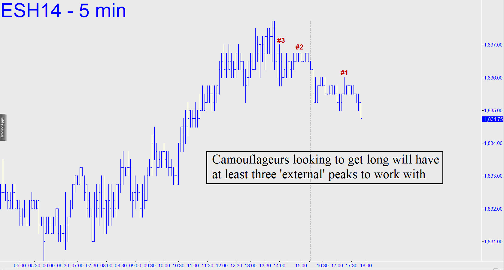 The rally to 1841.00 that I promised you still looks like a lock-up to me, although the ascent has been too brutally slow and sloppy for a buy-and-hold play. And now, unfortunately, a move to the target may not make for a very good short either if it occurs with an hour left in a Friday session. I’ll leave it up to you, but I wouldn’t recommend taking a short position home over the weekend unless it is at least 6 to 8 points in-the-black by the final bell. For night owls looking to pass the time with a little camouflage trading, the five-minute chart (see inset) may be as low as you’ll have to go. _______ UPDATE: The day was filled to overflowing with non-surprises. The futures topped at exactly 1840.00 in the early going, then sold off by 6 points before turning flaccid for the remainder of the session. In retrospect, confidently ‘knowing’ in advance where the futures would peak was not good enough, since it still would have required quite a bit of work for a trader to have extracted a living wage from the tedious ups and downs that characterized the day that followed. Be prepared for more of the same next week, since any week in which New Year’s Day falls on a Wednesday is a lost cause for anyone foolish enough to try to conduct business. Look for the futures to trend higher on Monday, since there were no corrective abc patterns on Friday that reached their ‘d’ targets.