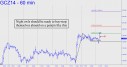 The futures look to be consolidating for a push to as high as 1228.40 over the near term. My hunch, however, is that the implied thrust will start from a lower low than the 1180.80 point ‘C’ shown. This means night owls who want to get aboard should wait for a marginal breach of 1180.80, then be ready to buy-stop themselves into the trade on an entry signal that would be tripped exactly 12 point above the new low. This is intended as a ‘timed buy-stop’ entry, since there can be no justification for abiding theroretical entry risk of more than about 0.50-0.70, no matter what your intentions. Using this tactic, you should stay with the trade only if it goes into the black immediately after you enter, and take a partial profit early in the trade. _______ UPDATE 10:40 a.m.): Gold took off last night without the fake-out pullback I’d expected. In retrospect, the best way for subscribers to have caught the trade would have entailed using the ‘timed buy-stop’ tactic described, but at a slightly higher price.
