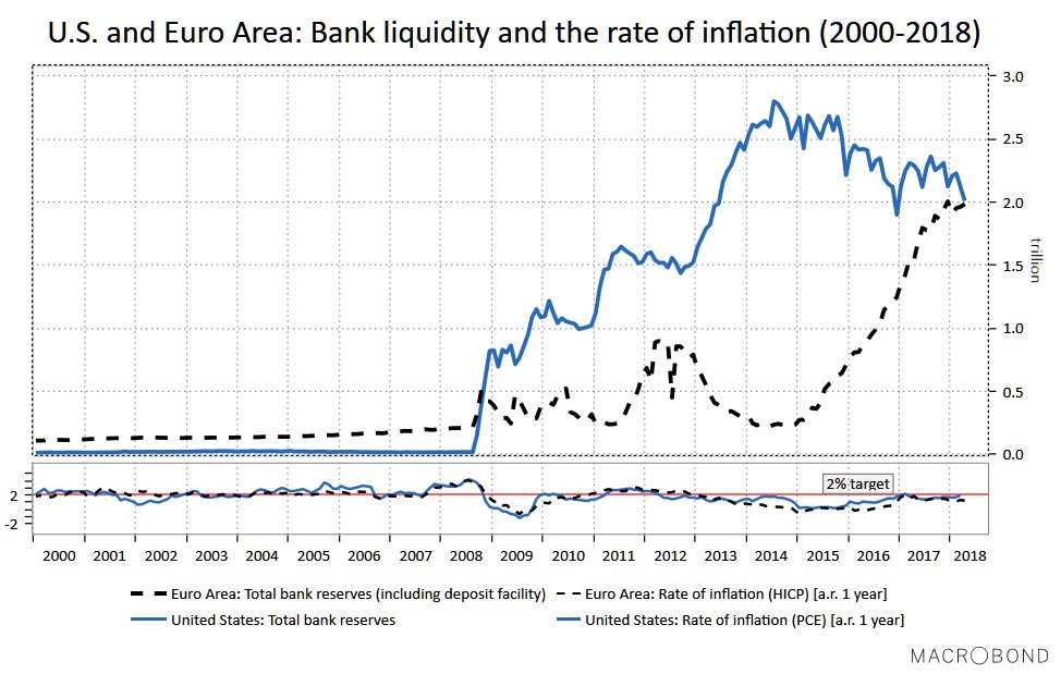 “Just a reminder of how bank liquidity and the size of central banks’ balance sheets have been unrelated (or maybe inversely correlated!) to the rate of inflation.”