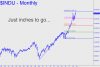 I’ve shown you today’s chart before (see inset), and some of you may remember it because it is more than a little threatening. But with the Indoos just a hair from reaching the potentially very important rally target featured in the chart, a timely reminder seemed appropriate. The target is a clear and compelling Hidden pivot resistance at 27251 that lies exactly 299 points above the 26,952 record high achieved a week ago. The high missed our benchmark by just 1%, and while that may not sound like much, I would expect the Dow to get even closer to it before any serious downturn could begin.