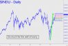 So much for the wall of worry! Bulls have improbably shrugged off steep downturns in the housing and auto sectors, rising interest rates, a costly tariff war with China, the pernicious rise of socialism on Capitol Hill, the economic implosion of China and Germany, a likely peak in corporate profits, a strong dollar that has sapped the earnings of U.S. multinationals; and, most recently, evidence that retail sales nosedived during the Christmas shopping season. All of these things together do not diminish the unstoppable look of the Industrial Average (see inset) as it moves within striking distance of new record highs. The Dow sits just inches from a 25,998 target we’ve used to stay with-the-flow, even as the trend has seemingly flouted sanity itself. At the target, the Indoos will have exceeded an important ‘external’ peak at 25,980, but will also lie within easy distance of an even more important peak at 26,277 from three weeks earlier. Speaking as a hard-core permabear who has learned to tune out gut feelings so that the charts can speak for themselves, your editor will mention a 28,110 Hidden Pivot that would become a logical minimum objective once the Dow has conquered the obstacles noted above. That would put it nearly 9% above current levels and 30% above the 21,712 nadir recorded in the final days of 2018. ______ UPDATE (Feb 20, 10:25 p.m.): The rally topped at 25,986, just 12 points shy of the target flagged above. Above it, the next important benchmark would be 26,084, equal to a small but technically significant peak made on November 9. Let’s see whether buyers have the moxie to take it on. _______ UPDATE (Feb 28, 9:45 p.m.): The Indoos are primed to fall a further 154 points to the 25761 target shown in this chart. Check my DIA update below for a leveraged play using this target.
