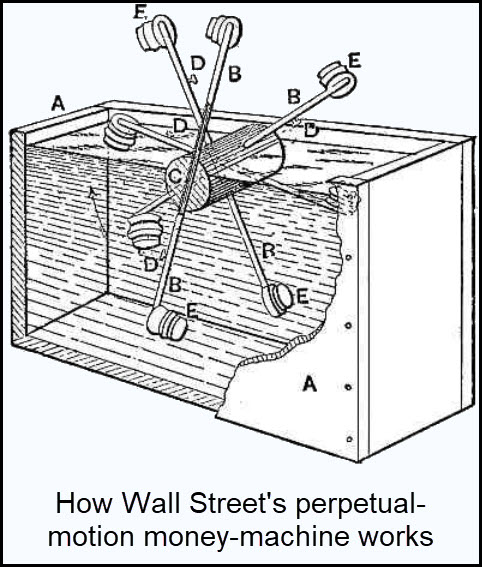 We’re living in interesting times, especially investors. The stock market is in its steepest climb in years, reminiscent of dot-com mania; and yet, individual shareholders have been withdrawing their money at the fastest pace in decades. Do the little guys know something that portfolio managers don’t? Wall Street’s geniuses have been raking in outlandish fees for targeting a handful of high-flying stocks with Other People’s Money (OPM). The perpetual-motion machine works simply because, try as the little guys might to get off the speeding train, their cash remains tied up in the game anyway. For instance, if one makes payments to a mortgage lender or a life insurance company, the cash doesn’t just sit idle; DaBoyz keep it working 24/7, whether in FAANG stocks, Bolivian reverse floaters, repos, junk paper — you name it. Give the feather merchants a dollar and in just a few months’ time they will multiply it tenfold. Just imagine the leverage they extracted from Trump’s trillion-dollar stimulus — the one that some evidently still believe was “tax reform.”