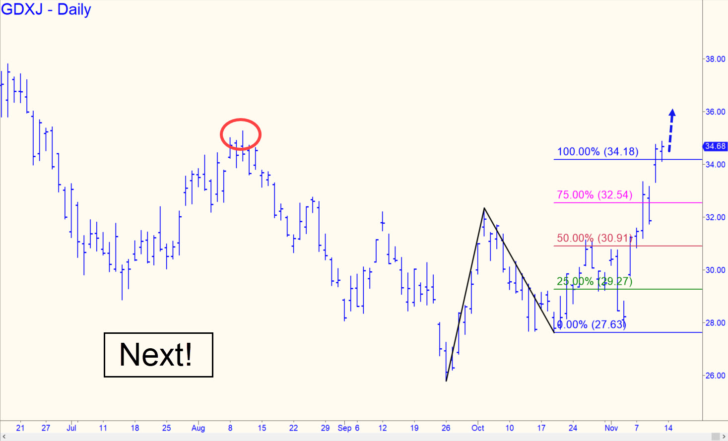 GDXJ – Junior Gold Miner ETF (Last:34.15)