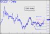 Silver looks like a slightly better bet than gold to achieve the 'D' rally target of the modest 'reverse' pattern shown. It has signaled one 'mechanical' winner on the way to 23.85, but we are more interested at this point in how strongly the Hidden Pivot resists the uptrend. It has been tortuous and does not look powerful enough to blow through the resistance. Still, there is no reason to think this is impossible or even unlikely, so let's simply monitor the move closely and exploit it as we always do whenever the odds tilt in our favor. _______ UPDATE (Jan 3, 10:14 p.m. EST): Like February Gold, March Silver would trigger a 'mechanical' buy if it falls to the green line. The 21.40 stop-loss would make the trade equally risky, with $3,000 theoretical at stake on entry. This one, too, is therefore for experts who can pare that down to perhaps $300 per contract. Interested? Nudge me if I'm in the chat room at post time. _______ UPDATE (Jan 6, 8:12 p.m.): Time to remove Silver from the front page? I will do so shortly unless there's a popular uprising to save it.