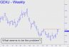 Relative to physical, this junior gold proxy underwhelmed investors last week. The disappointment was palpable on Friday, when GDXJ opened just off the previous day's high and traded slightly above it, only to fail by 10 cents to surpass a distinctive 'external' peak at 35.26 recorded back in August. Will it make amends by impulsing above the peak on Monday? Any less would be a discouragement, since buyers shouldn't need a running start from lower levels to accomplish this unchallenging feat.