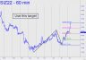 AAPL was overdue for a drubbing, especially since the stock could not have continued to hover in outer space when the broad averages finally got hit. Nor is there any compelling reason for the portfolio chimps who live off AAPL to put much effort into holding it aloft while other stocks continue to correct. You can see that a seemingly nasty fall to $150 would not change the menancingly bullish look of the chart or the likelihood of new record highs. Most immediately, there's a 162.40 downside target we can use as a minimum projection over the near term (30-min, A=174.90 on 8/18). ________ UPDATE (Aug 30, 5:06 p.m.): The bearish pattern shown in this chart, with a 151,15 downside target, is all we've got to work with at the moment, The impulse leg is not legitimate and the C-D leg has yet to touch p, but we'll give the pattern the benefit of the doubt as AAPL continues to make its way lower. Apple says iPhone sales are holding up fairly well, but with Europe headed into a possible economic depression, the market for overpriced/over-featured cell phones is about to crash along with consumer spending. ________ UPDATE (Aug 31, 11:40 p.m.): This chart revises the quite bearish target slightly upward to 151.38. Today's low just pennies from p=157.00 says the pattern is working and will yield good odds for trading its levels 'mechanically'. ________ UPDATE (Sep 3, 10:32 a.m.): 'Good odds', indeed! A straight-up 'mechanical' short at the green line would have produced an intraday profit of as much as $486 per round lot. The 151.38 target remains viable as a minimum downside objective for the near term. ______ UPDATE (Sep 7, 9:30 p.m.): My newly bullish outlook for the E-Mini S&Ps contrasts sharply with a still-bearish forecast for AAPL. I'll be
