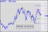 That whooshing sound on Friday was the stock market getting flushed for a rare change. Permabears shouldn't get their hopes too high, however, since DaBoyz will have an opportunity to turn things around at the 4146.75 'D' target shown in the chart. This Hidden Pivot support can be used as a minimum downside objective for the near term -- and also as a place to attempt bottom-fishing with as tight a stop-loss as you can abide. Since you will be catching the proverbial falling piano, be prepared for more slippage to 3994.75 if the support doesn't hold. There, too, I would encourage you to bottom-fish using a bullish pattern on the very lesser charts (aka 'camouflage'). _______ UPDATE (Apr 26, 11:22 p.m.): At today's close, I provided detailed guidance for a countertrend trade that went on to produce a profit of as much as $2000 per contract. Two subscribers reported doing the trade successfully, each in a different way. The 4194.75 'D' target of the pattern is just an inch away at this hour, so you should be out of 3/4 of the position. Here's a chart that shows how the trade set up. _______ UPDATE (Apr 27, 10:57 p.m.): When the futures finish their distributive dance at p2=4153.81, expect them continue falling to at least D=3994.75 of this pattern. This is the same target as the one given above, but with additional, falling price bars. _______ UPDATE (Apr 26, 10:06 p.m.): No telling how high this detour will go, but AAPL's very strong performance today is warning bears not to get too aggressively in the way.