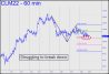 Silver's rally fizzled, as so many of them do, stranding a 'mechanically' acquired long in limbo just above a 24.04 stop-loss. The sting would have caused little pain, however, since subscribers were advised to set up a 'camouflage' trigger when the futures first came down to the green line. I am anticipating a gratuitous dip below C=24.04 before bulls could attempt yet another charge for better or worse. The chart is such a mucking fess that I can offer no compelling downside targets. This suggests that the next upturn will come firm a 'discomfort' zone lying in the grey void between two prior lows.