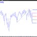 Last week's correction has further to go before buyers could step in without risking much. A pullback to the green line (x=5422) would trigger a 'mechanical' buy, although there are no guarantees we'll be gifted with such a bargain price. More interestingly, neither can there be any guarantees that the next big rally will reach the 5881 target shown in the chart. Had the uptrend impaled p=5575 a month ago on the way up, a finishing stroke to 5881 would be more or less asssured. However, price action at p was muffled, and it took fully three weeks before buyers were able to push past it decisively. That is a cautionary sign, even in a bull market that has been as strong and steady as this one.