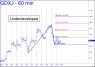 The 53.05 target shown is the highest that can be projected for Silver on a long-term chart. It is unlikely to work precisely, since the chart is a blend of different contract months, and because the pattern itself will be too obvious to too many. Even so, the target is sufficiently compelling to suggest the Comex price will either top somewhere near there, or stall on the way to still greater heights. We can use 53.05 as a minimum objective in any event, since that stab through p2, the secondary pivot, left little doubt about the feistiness of silver bulls. ______ UPDATE (Oct 3): Assuming today's top at 48.325 endures for a day or two, try bottom-fishing with a tightly stopped bid at 47.175, a minor midpoint Hidden Pivot support. An easy breach would portend more slippage to as low as 46.025. ________ UPDATE (Oct 6, 12:08 p.m. EDT): The pullback got no lower than 47.685 before silver took off again. The closest Hidden Pivot 'D target you can use for a minimum objective for the next couple of days is 49.835.