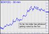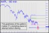 I am recommending bottom-fishing if AAPL gets within a 10-15 cents of the 223.93 target shown in the chart. Buy two options expiring March 27 at the lowest out-of-the-money strike at which calls are priced under 1.00. This trade is suitable for rookies because the target, which comes from a gnarly pattern that is just my style, looks likely to work precisely. You can interpolate my instructions, perhaps increasing the size of the bet, if you know what you are doing. Check back before Monday's opening in any event, since I might be able to refine my instructions. That is impossible now, since Tradestation is not currently showing Friday's closing bid/ask data for AAPL options. I have not made the 223.90 price target publicly viewable, but be aware that moles from Goldman, Morgan Stanley et al. seem to be aware of them and could front-run us. _______ UPDATE (Mar 23, 9:15 a.m.): Better get used to it. AAPL popped a $17 rally from 221.25 that would have offered an excellent bottom-fishing opportunity -- except that the low occurred at 4:30 a.m., and the move was over by 8:30, an hour before options open. Trend and target, as you will have observed, are as easy to nail as shooting fish in a barrel, but we can only make money on them if they occur at the 'correct' time of day. There will be other opportunities. ______ UPDATE (Mar 23, 5:46 p.m.): AAPL relapsed to a target that worked even more precisely for bottom-fishing. With apologies, here's the chart that I mistakenly thought I'd posted in the Trading Room in timely fashion. Under ordinary circumstances, the precise completion of a pattern that has taken more than two weeks to play out would augur a strong bounce lasting at least 2-3 days. We