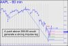 AAPL bounced a spectacular $22 off a low that occurred $2 from the 254 target we'd used to try and nail the bottom of the so-far mini-bear market. That wasn't quite close enough to get long with one of the trick-shot set-ups we use, although it may have helped timing an exit from any puts you held for the ride south. Looking just ahead, we can use the 281.37 target of the rABC pattern shown as a minimum upside objective, but the stock would need to push past 285.65 to generate a strong impulse leg on the hourly chart. The trick for us now will be to avoid underestimating the power of this short squeeze, which will feed on the tendency of fools to do exactly that. _______ UPDATE (Mar 2, 10:32 p.m. EST): The world's smartest money is up to its beady little eyeballs in Apple stock, so shorts don't have a prayer. It's going to be 'Take no prisoners!' all the way up, and the goal will be to jack the stock high enough so that it can attract a new crop of institutional suckers who will think they're getting a bargain on even mild weakness above $300.