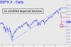 The S&Ps didn't quite reach the 'D' target of the reverse pattern I used to establish a tracking position ahead of last week's stunning fall. The shortfall is bearish, since the way the downtrend obliterated the 3096.68 midpoint support on the way down gave the move a high probability of achieving D. We'll give bulls the benefit of the doubt for now, since short-covering on Friday appeared likely to goose the index even higher this week. We'll also set some alerts to trigger a 'mechanical' short at the red line or perhaps the green. Its purpose would be to give us a handle on trend strength as SPX works through Hidden Pivot levels of lesser degree. I'll consider the initial tracking position as having been closed out on Friday. The profit on 400 shares would have been around $80,000, assuming the last 25% of the position was covered on the close.