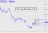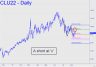 Crude would trigger a 'mechanical' short if it touches the green line x=96.15. However, because the impulse leg was such an agonizing slog, I can recommend this trade only to subscribers who know how to cut the implied theoretical entry risk of $23,000 on four contracts to perhaps a tenth of that. It would require close attention to 'camouflage' opportunities on the sub-15-minute charts, aka 'camouflage. Merely spectating will have its rewards, since the next leg down should help snuff inflation at the pump as well as the unchecked greed of Big Oil. _______ UPDATE (Aug 15, 7:54 p.m.): Use the 81.79 target shown here as a minimum downside projection for the near term. If this Hidden Pivot support fails, the next step down would be to 78.93, calculated using A=111.14 from June 29. _______ UPDATE (Aug 18, 9:27): The failure of bears to reach p2=84.66 of the pattern shown in the thumbnail inset suggests it is on its way up to at least to the green line (x=96.11). It would trigger a 'mechanical;' short there, stop 101.85, but I am not recommending the trade because of the weakly erratic nature of the A-B impulse leg.