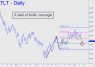 Last week's steep fall to the green line from just shy of D will provide an interesting test of 'mechanical' set-ups, since they are designed to signal buying opportunities when one's instincts shout 'Flee for your life!' Bulls must have been feeling like that on Thursday, when the downdraft reached a perhaps temporary bottom. It should be good enough to propel TLT to at least p=116.90, but I hadn't recommended buying at x unless you are familiar with 'camouflage' set-ups that can pare entry risk by as much as 95%. Please let me know in the chat room if you took the trade and I'll establish a tracking position if there are at least two of you. ______ UPDATE (Aug 15, 11:05 a.m. ET): The gap-up opening hit 116.75, so you should be out of half the position. I'll use the current price of 116.17, well off the high, to establish a cost basis of 112.91 for the 200 shares that remain. Tie them to an impulsive stop-loss at 114.83 for now, o-c-o with an offer of 100 shares at 118.50 and another 100 at 119.30. _____ UPDATE (Aug 16, 5:27 p.m.): For those who actually did the trade, the stop would have taken you out today for a $384 gain. We got lucky, since this vehicle has been trading like garbage.