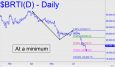 A week of pussyfooting at the 21,318 midpoint support has given way to a so-far modest breach, but the damage looks significant enough to eventually send this bitcoin proxy down to at least 15,800, the 'secondary' Hidden Pivot. Further downside progress to D=10,282 is not yet a done deal, however, even though there is an even lower target at 9507 that was noted here earlier. If Bertie should rally first, it would offer short sale rated at around 7.3 at x=26,836, stop 32,355.