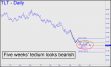 Five weeks of tedium have etched a picture of distribution on the daily chart (inset), presumably culminating with a dive at any time to the 108.74 target of the pattern shown. This suggests that my forecast for a major top in Ten Year rates at 3.24% may eventually be borne out. The so-far high at 3.17 reached on May 9 was close enough for us to have considered the target fulfilled. However, we should keep an open mind toward the possibility of a head fake corresponding to an important peak in rates. If so, it would portend deepening recession for the U.S. and the world. ______ UPDATE (Jun 13, 10:53 a.m.): I've adjusted the target upward to 3.56 using a less gnarly pattern in $TNX.X, a vehicle that tracks interest rates tied to the Ten-Year Note.