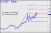 The pennant formation shown is building a base for June Crude to pop to as high as 146.42. This seems incredible and goes against the grain of my recent forecasts, which have implied that crude topped at $121 in March. Even so, I'm forced to consider the possibility of a powerful upthrust, based on the purely technical evidence in the chart. Such a move would not likely be caused by a surge in the global economy, which appears headed toward deep recession. It would also be bucking deflationary headwinds that will continue to mount as higher interest rates crush borrowers. The only way crude could get to $146 is with a massive disruption of the distribution chain such as war might cause. Is the chart predicting a geopolitical conflagration? So it would seem.