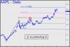 I'll be interested to see how well our longstanding bull market target at 187.93 works. On the one-hand, I've drum-rolled it loud enough and for long enough to compromise its usefulness. On the other, the particular pattern is the most reliable of the ones I employ for trading and forecasting, with a relative quick ABC, followed by a very elongated C-D leg that causes Gartley and other 1-2-3 pattern traders to lose sight of the 'D' target. There is also the punitive correction that began a zillionth of an inch from the midpoint pivot. That is usually predictive of an equally precise pullback from the D' target, which became an odds-on bet to be reached when the stock blasted free of the midpoint pivot's gravity in November. The least likely scenario I can envision is a bear market starting without D having been reached. We'll be on our guard for this nonetheless, watching for minor corrective abc patterns to start exceeding their 'd' targets, and for minor abc rallies to start failing at 'p'. _______ UPDATE (Jan 10, 5:20 p.m.): Bears gave it their all but failed to drive AAPL down to p2=167.36, even, let alone to D=167.37. The short-squeeze that ended the session would trip a 'mechanical' short at x=172.66, stop 175.31, but I'm going to suggest sitting this one out, since the squeeze is unlikely to abate overnight. _______ UPDATE (Jan 12, 5:10): Bulls will face heavy supply between 177 and 181, and I'll be as interested as you to see how they handle it. If poorly, the expected push to 187.93 may take significantly longer than I'd originally imagined, assuming it happens at all. _______ UPDATE (Jan 13, 6:52 p.m.): I'm no fan of head-and-shoulders patterns because they are everywhere you seek them, but this one is