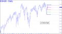 The simple, corrective pattern shown is unlikely to deceive us as we search for signs that the bull market might be faltering. The highest target I've projected so far is 5132.20, somewhat lower than the 5176.00 given here last week. That number was derived from a composite chart, but the revised target, which comes from the February contract alone, should give us a more accurate picture. If getting to 5132.20 is going to remain a good bet, the futures should retrace to no lower than p=4500.70. They could fall beneath that number or even to D=4350.80 and still be no worse than even odds to hit 5132. But if we are looking for better odds, 4500.70 must hold. If it doesn't, and a subsequent rally brings the futures back up to the green line (x=4575.60), that could conceivably set up a 'mechanical' short. Moreover, if the current downtrend crushes the 'hidden' support at 4350.80, that could spell trouble for the bull market. _______ UPDATE (Jan 19, 1:01 p.m.): A bullish wilding spree Sunday night turned a would-be corrective pattern (see above) into chop suey, ensuring more upside most immediately to at least 4773.90. _______ UPDATE (Jan 20, 10:48 a.m.): Currently trading for around 4730, the futures are now bound for a minimum 4835.50 (daily, A=4032.80 on 11/18). A correction to p=4559.90, however unlikely, would warrant a somewhat rare 'mechanical' buy at the red line. D=5132.20 is still the highest target I can project using the daily bars.