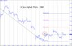 If Gold was acting coy about its next move, May Silver ended the week looking primed to moved higher. The pattern shown triggered an appealing 'mechanical' buy at the green line (x= 67.434) that should be good for a ride to at least p=73.658 (nearly achieved on Friday), but to as high as 86.105 over the next 2-3 days. The set-up is 'textbook' enough to suggest that anyone who bought on Thursday is an 80% bet to make money. Sunday's opening is always unpredictable, but if trading begins with a fist-pump through p, you can be confident the move will reach the target more than $6 above.