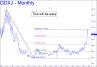 The 53.05 target shown is the highest that can be projected for Silver on a long-term chart. It is unlikely to work precisely, since the chart is a blend of different contract months, and because the pattern itself will be too obvious to too many. Even so, the target is sufficiently compelling to suggest the Comex price will either top somewhere near there, or stall on the way to still greater heights. We can use 53.05 as a minimum objective in any event, since that stab through p2, the secondary pivot, left little doubt about the feistiness of silver bulls.