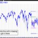 This symbol has tracked my forecast for the last couple of weeks, but what now? Up or down in the week ahead looks like a coin-toss at the moment, but if rates break lower, expect them to fall to at least 4.278% (p2, the secondary Hidden Pivot), and to take a tradable bounce from that number. Best case (for borrowers, that is) would be for further slippage to d=4.161%, which presumably would be signaled by a decisive breach of p2=4.278%. Alternatively, if rates move higher, signaled by a two-day close above 4.439%, look for a move to 4.559%.
