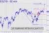 A wild and wacky day, for sure. Traders are supposed to love volatility, but who among them could have captured the dollar opportunity in Wednesday's fearsome machine-driven swings after the Fed announced what everyone on earth had expected. The initial feint was lower, and it suggests that traders were at first disappointed that the Fed had not eased by 50 basis points rather than 25. But by day's end they seem to have figured out that a 'mere' 25 basis points was no cause for despair, especially since they can be certain more easing is coming. For now, use the 3042.25 target shown as a minimum upside objective. You can also use a pullback from our 'sweet spot' to initiate a mechanical buy at the green line. If you catch a ride, use a piece of your profits to cushion a tight stop-loss for a short from D=3042.25. ______ UPDATE (Sep 19, 5:20 p.m.): A pullback to the green line at 2996.00 (see inset) would trigger a mechanical buy, stop 2980.50. Initial risk is $775 per contract, so this one may not be for everyone. It will work best if the bid is hit overnight Thursday or early in Friday's session. _______ UPDATE (Sep 20, 8:32 a.m.): The pullback to the green line (2996.00) occurred at 4 a.m. and produced a profit of as much as $1400 by noon, when the subsequent rally topped at 3024.50. The 3042.25 target of the same pattern will remain valid unless C=2980.75 is breached to the downside. Several subscribers reported having done the trade.