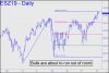 Buyers impaled the 2962.38 midpoint resistance on Friday (see inset), leaving no doubt about whether the futures will achieve the 3069.75 'D' target of the same pattern. It lies 3.36% above, which is roughly commensurate with one in AAPL at 243.68 that is 2.5% higher. We've been watching AAPL closely because the decade-old bull market is unlikely to end as long as Apple shares are moving higher. Concerning the E-Mini S&Ps, the rally pattern is sufficiently clear and compelling to suggest that a tightly stopped short at D would enjoy success. As always, however, I would recommend shorting aggressively only if you've made a profit on a long position enroute to the target. Stay tuned to the chat room if you would like guidance on this, since trades disseminated in the room in real time have racked up a very impressive track record lately, most recently with a $2400 theoretical winner in ES on Friday.